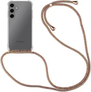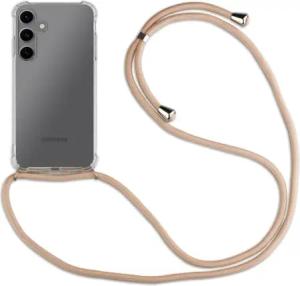 Hülle Kompatibel mit Samsung Galaxy S24 FE | Handykette Smartphone Halskette Hülle mit Band | Handyhülle mit Kordel zum Umhängen Kompatibel für Galaxy S24 FE | Beige/Braun