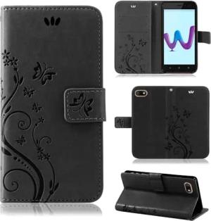 Hülle Kompatibel mit Wiko Sunny 3 | Premium PU Leder Handyhülle Wallet Case für Sunny 3 | Schutzhülle Blumen Klapphülle Handyhülle | Schwarz