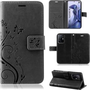 Hülle Kompatibel mit Xiaomi 11T / 11T Pro | Premium PU Leder Handyhülle Wallet Case für 11T / 11T Pro | Schutzhülle Blumen Klapphülle Handyhülle | Schwarz