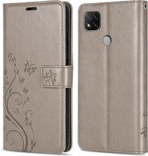 Hülle Kompatibel mit Xiaomi Redmi 9C | Premium PU Leder Handyhülle Wallet Case für Redmi 9C | Schutzhülle Blumen Klapphülle Handyhülle | Grau