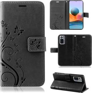 Hülle Kompatibel mit Xiaomi Redmi Note 10 Pro | Premium PU Leder Handyhülle Wallet Case für Redmi Note 10 Pro | Schutzhülle Blumen Klapphülle Handyhülle | Schwarz