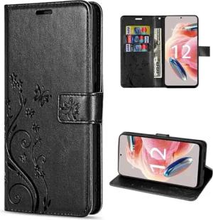 Hülle Kompatibel mit Xiaomi Redmi Note 12 5G | Premium PU Leder Handyhülle Wallet Case für Redmi Note 12 5G | Schutzhülle Blumen Klapphülle Handyhülle | Schwarz