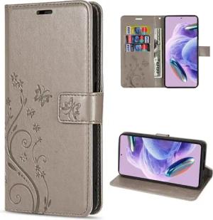 Hülle Kompatibel mit Xiaomi Redmi Note 12 Pro 5G | Premium PU Leder Handyhülle Wallet Case für Redmi Note 12 Pro 5G | Schutzhülle Blumen Klapphülle Handyhülle | Grau