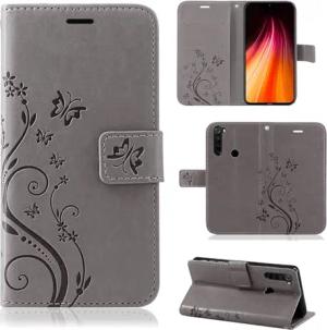 Hülle Kompatibel mit Xiaomi Redmi Note 8 (2021) | Premium PU Leder Handyhülle Wallet Case für Redmi Note 8 (2021) | Schutzhülle Blumen Klapphülle Handyhülle | Grau