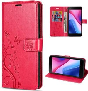 Hülle Kompatibel mit ZTE Blade A35 Lite | Premium PU Leder Handyhülle Wallet Case für Blade A35 Lite | Schutzhülle Blumen Klapphülle Handyhülle | Rot