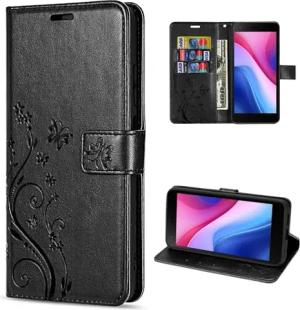 Hülle Kompatibel mit ZTE Blade A35 Lite | Premium PU Leder Handyhülle Wallet Case für Blade A35 Lite | Schutzhülle Blumen Klapphülle Handyhülle | Schwarz