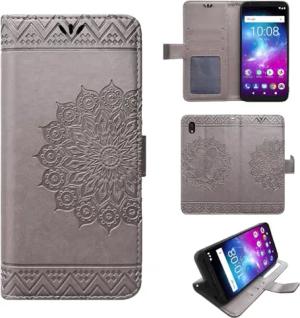 Hülle Kompatibel mit ZTE Blade A55 | Premium PU Leder Handyhülle Wallet Case für Blade A55 | Schutzhülle Blumen Klapphülle Handyhülle | Grau