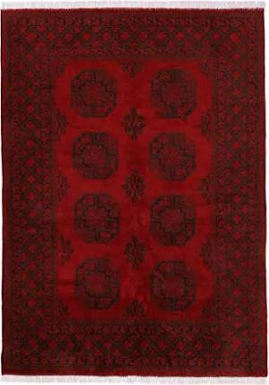 Afghan Akhche Teppich Rot 200x290 cm | Handgeknüpfter Teppich für Wohn- und Schlafzimmer
