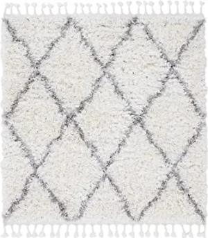 Hochflorteppich Eddy Quadratisch Weiß 150x150 cm Floral | Moderner Teppich für Wohn- und Schlafzimmer