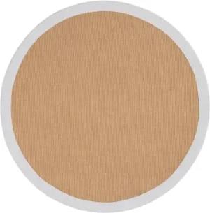 Sisalteppich Naturfarbe Ø 60 cm handgewebt mit Bordüre aus Baumwolle in Weiß | Moderner Rutschfester Flachgewebe Teppich Uni aus Naturfasern für Wohnzimmer, Schlafzimmer