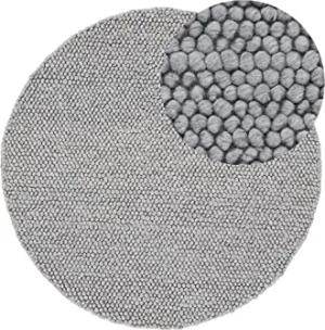 Wollteppich Calo weicher Filzkugel-Teppich Rund Hellgrau Ø 200 cm für Wohnzimmer, Schlafzimmer & Kinderzimmer