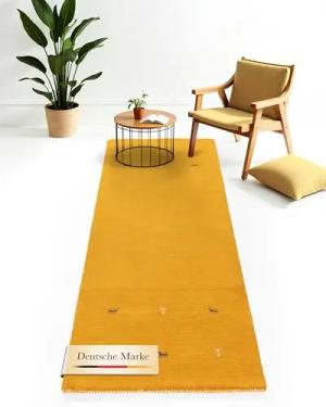 Wollteppich Gabbeh Uni Läufer Gelb 80x600 cm | Moderner Teppich für Wohn- und Schlafzimmer