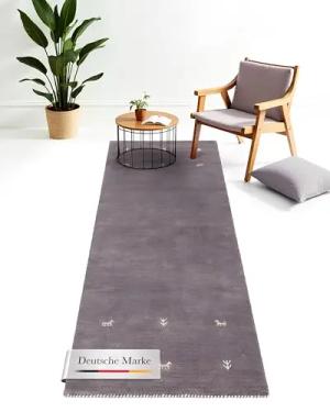 Wollteppich Gabbeh Uni Läufer Grau 80x350 cm | Moderner Teppich für Wohn- und Schlafzimmer