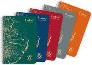 68446C - Spiralheft Forever Premium, DIN A6, 100% recycelt, 60 Blatt mikroperforiert und abtrennbar, liniert, weiß 90g, farbig sortiert, 1 Stück