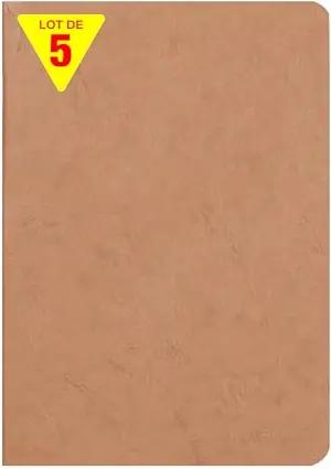 733100Cpack - Packung 5 Heft - Notizbuch geheftet, Age Bag, DIN A5 14,8x21 cm, 48 Blatt, blanko, 90g, Tabakbraun, 1 Pack