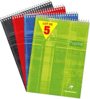 8151C - Packung mit 5 Blöcken Pupitre mit Doppelspirale, DIN A4 21x29,7cm, 80 Blatt, 90g, französische Lineatur, farbig sortiert, 1 Pack