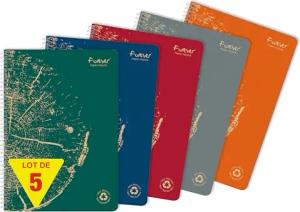 Forever 68401Cpack Un Lot de 5 Cahiers à Spirale 100% Recyclé (une Marque de Clairefontaine) - A4 21x29,7 cm - 120 Pages Détachables Grands Carreaux - Papier 90g recyclé