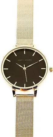 Lily + Stone Armbanduhr, schwarzes Zifferblatt, Schwarze Schnalle, Armband Gold