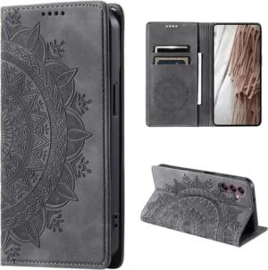 Handytasche kompatibel mit Samsung Galaxy A52 / A52 5G / A52s 5G - Handy Case mit Kartenfach Handyhülle - Flipcase klappbar Motiv Mandala Grau