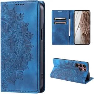 Handyhülle für Samsung Galaxy S24 Ultra - Handytasche mit Kartenfach Klapphülle Cover - Handy Hülle klappbar Motiv Mandala Blau