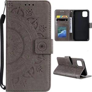 Handytasche kompatibel mit iPhone 11 Pro [5,8 Zoll] - Handy Case mit Kartenfach Handyhülle - Flipcase klappbar Motiv Mandala Grau