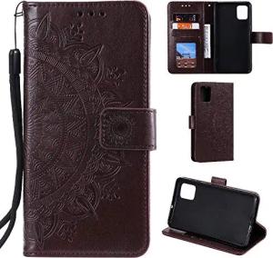 Schutzhülle kompatibel mit Samsung Galaxy A51 - Handycover mit Kartenfach Schutztasche Wallet - Flip Case klappbar Motiv Mandala Braun