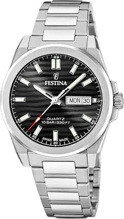 Swiss Made Herrenuhr Analog Edelstahl 316L Silber - Quarz Datum - Saphirglas, Wasserdicht 5 ATM - F20018/1 Classic Steel