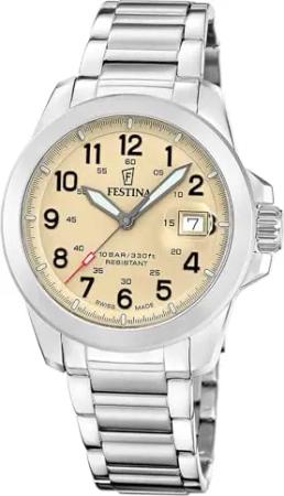 F20081/1 Herrenuhr Quarz Stahl/Beige mit 3 Bändern