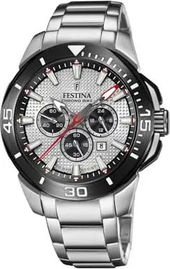 Herren Uhr Analog aus Edelstahl 316L Silber - Quarzwerk - Chronograph - Kalender - Mineralglas mit hoher Widerstandsfähigkeit - Wasserdicht bis 10 ATM F20670/2 Chrono Bike