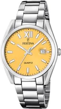 Herrenuhr Quarz mit Armband aus poliertem Edelstahl, Zifferblattfarbe: Gelb, Wasserdichtigkeit: 5 bar, Gehäusedurchmesser: 40mm, F20683/3