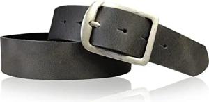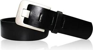 Ledergürtel Vollleder (Büffelleder) 3,5 cm breit, 3,5 mm dick, massive Messingschnalle altsilber galvanisiert 6,5 x 5,5 cm, wechselbar mit Druckknopf, Jeans Büro Made in Germany
