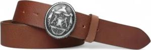 Damen Trachtengürtel mit dunkler Gürtelschnalle Löwen Wappen Brosche, 17764, Größe:Körperumfang 105 cm/Gesamtlänge 120 cm, Farbe:Cognac