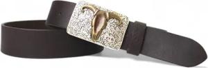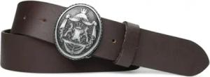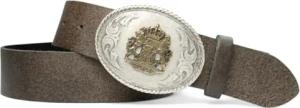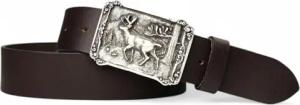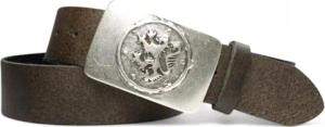 Damen Trachtengürtel mit dunkler Gürtelschnalle Löwen Wappen Brosche, 17764, Größe:Körperumfang 95 cm/Gesamtlänge 110 cm, Farbe:Dunkelbraun
