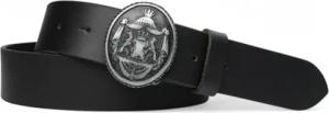 Damen Trachtengürtel mit dunkler Gürtelschnalle Löwen Wappen Brosche, 17764, Größe:Körperumfang 95 cm/Gesamtlänge 110 cm, Farbe:Schwarz