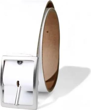 Damengürtel echtes Rindsleder ca. 3,5 cm breit, rechteckige Dornschnalle 9 x 4,5 cm (Zamak leicht glänzend), extra flach geschnitten, wechselbar per Druckknopf, für Jeans und Taille