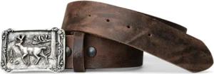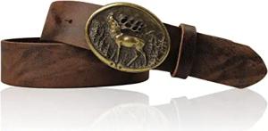Trachtengürtel 100% echtes Leder 4 cm Breite ovale Hirschschnalle Messing 9 cm x 7,5 cm Druckknopfsystem Landhausmode Herren