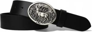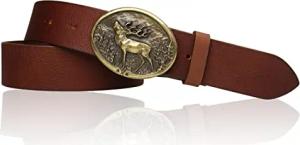 Trachtengürtel echtes Leder 4 cm breit 95-125 cm mit ovaler Hirsch Gürtelschnalle 10x6 cm Druckknopf-System Landhausmode Jagdgürtel Made in Germany