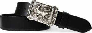 Trachtengürtel aus echtem Leder 4 cm breit mit silberfarbener Schnalle Hirsch im Wald 7,5x5,5 cm Größen 95-125 Druckknopfsystem wechselbare Schnalle Landhausmode Made in Germany