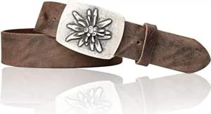 Trachtengürtel Echtleder 4 cm mit Edelweiß Gürtelschnalle 7 x 5 cm für Damen und Herren Trachten Outfit Landhausmode