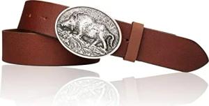 Trachtengürtel Büffelleder 4 cm Breite Wildsau Messingschnalle 7,5 x 6 cm Druckknopfsystem Größen 95-125 Made in Germany Landhausmode Jagd