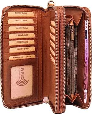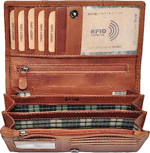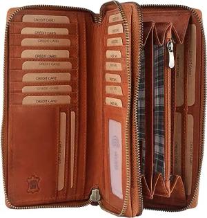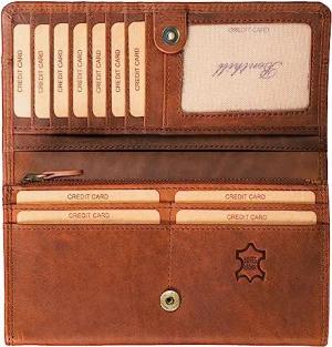 Lange Echt Leder Geldbörse für Damen | Damenbörse mit RFID Schutz | Großes Portemonnaie mit vielen Kartenfächern, Farbe:Braun