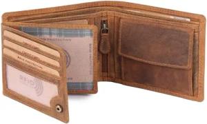 Geldbörse Herren Echt Leder - Portemonnaie mit RFID-Schutz - Männer Geldbeutel - Portmonee, Farbe:Brown - Tan (H)