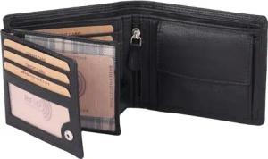 Geldbörse Herren Echt Leder - Portemonnaie mit RFID-Schutz - Männer Geldbeutel - Portmonee, Farbe:Schwarz