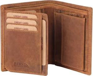Geldbörse Herren Leder | Echtleder Geldbeutel mit RFID-Schutz | Slim Portemonnaie für Männer aus echtem Rindsleder | Schmale Hochformat Ledergeldbörse
