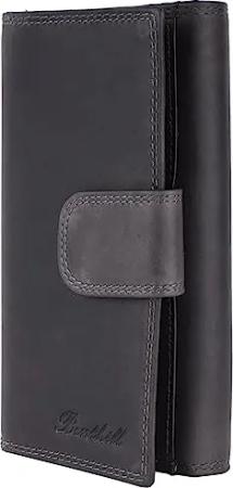 Portemonnaie Damen Leder - Hochwertige weiche Vintage Echtleder Damen Geldbörse mit RFID Schutz - Grosse Damenbörse lang - Frauen Portmonee inkl. Geschenkbox, Farbe:Schwarz