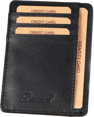 Kartenetui aus Echt Leder | Mini Geldbörse für Damen & Herren | RFID Schutz - Kleines Portemonnaie | schlanke Mini-Börse, Farbe:Schwarz