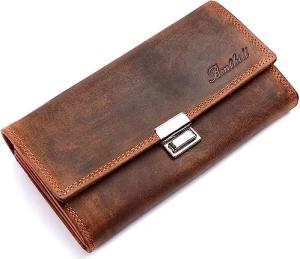 Portemonnaie Damen Leder - Hochwertige weiche Vintage Echtleder Damen Geldbörse mit RFID Schutz - Grosse Damenbörse lang - Frauen Portmonee inkl. Geschenkbox, Farbe:Braun