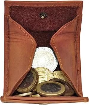 Kleine Münzbörse Leder | Echt Leder Münzbeutel | Minibörse für Münzen | Wiener-Schachtel für Kleingeld, Farbe:Braun