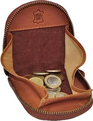 Münzbörse Echt Leder | Lederbörse für Münzen mit Reißverschluss | Kleine Schüttelbörse | Kleingeldbörse | Münzen-Kleingeldbörse,Farbe:Braun
