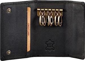 Schlüsselmappe Echt Leder | Damen & Herren Schlüsseletui mit Platz für 6 Schlüssel | Schlüsseltasche mit 2 Kreditkartenfächer, Farbe:Schwarz